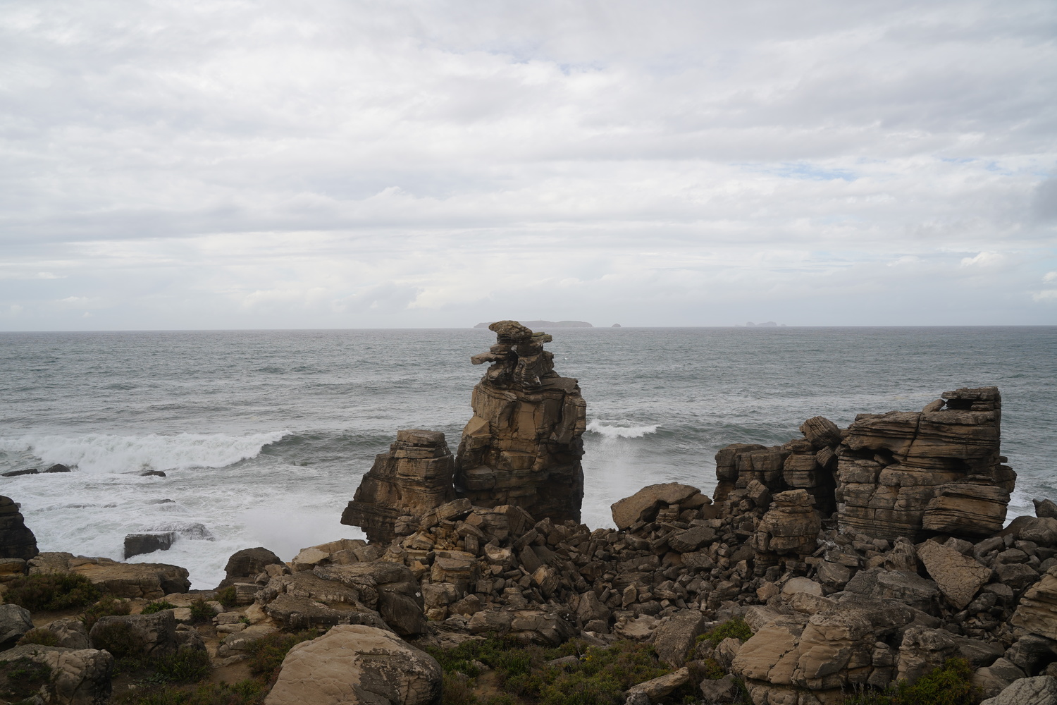 At the end of the peninsula, there is an impressive rocky coastline. The waves crash into the rocks, and the spray shoots up to 30 meters.